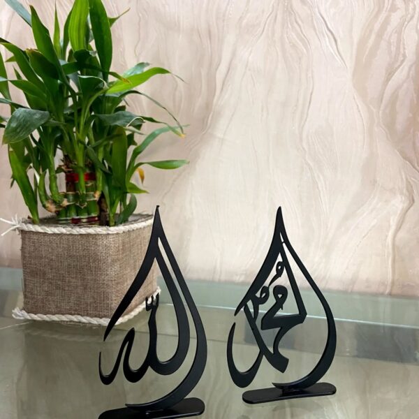 Add a touch of divine elegance and spiritual charm to your home with this beautifully crafted Allah Muhammad Table Decor.Designed in graceful Arabic calligraphy, this decor piece reminds you of faith, peace, and gratitude every day.