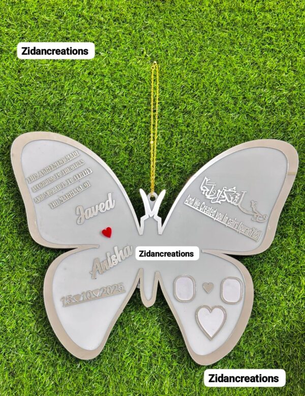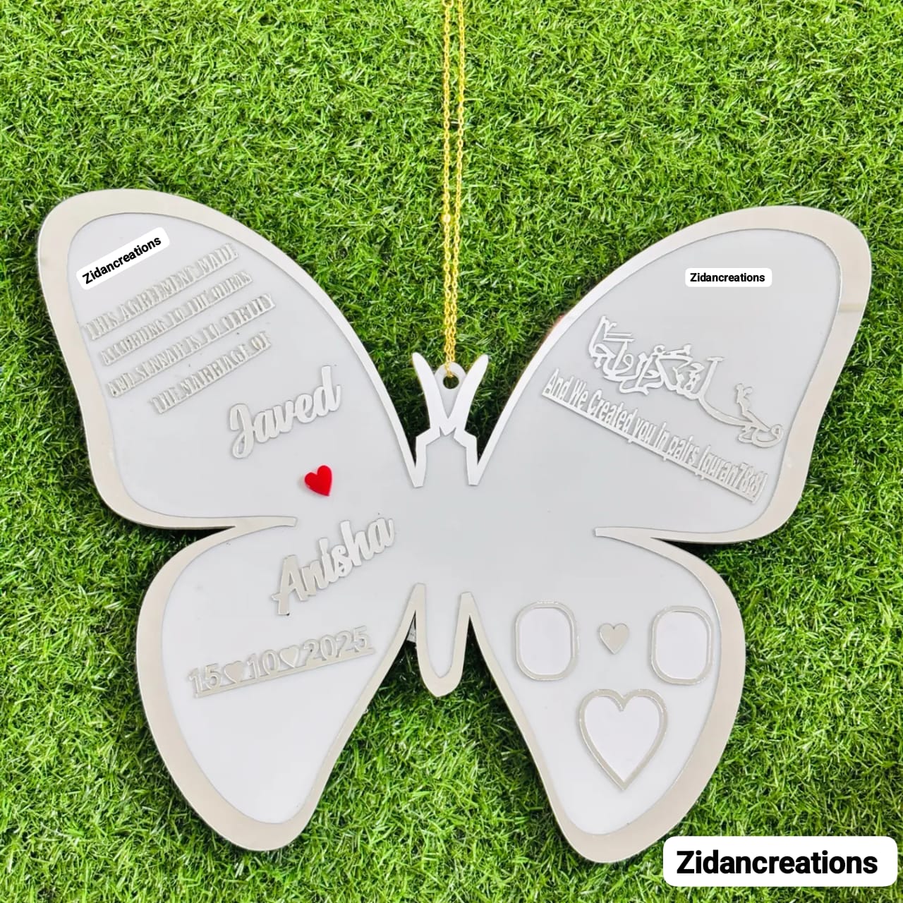 Celebrate the sacred bond of marriage with this elegant Butterfly Nikah Frame. Featuring delicate butterfly designs symbolizing transformation and new beginnings, this frame beautifully captures the essence of love and commitment.