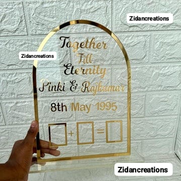 D-Cut Nikah Frame – A stylish and modern photo frame designed specially for Nikah ceremonies. Its unique D-shape cut design gives a royal and elegant touch, making it perfect for preserving your wedding memories in a classy way. Ideal for decoration, gifting, and capturing your special day beautifully.