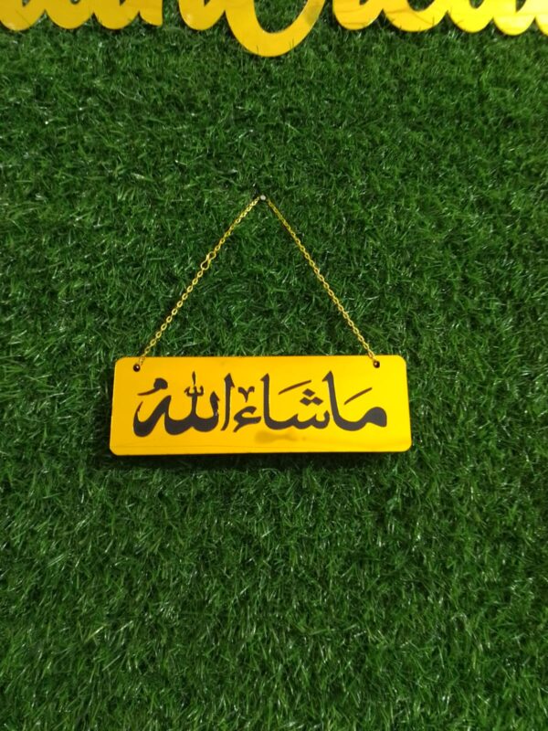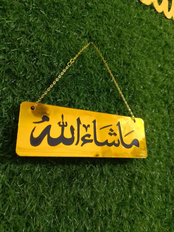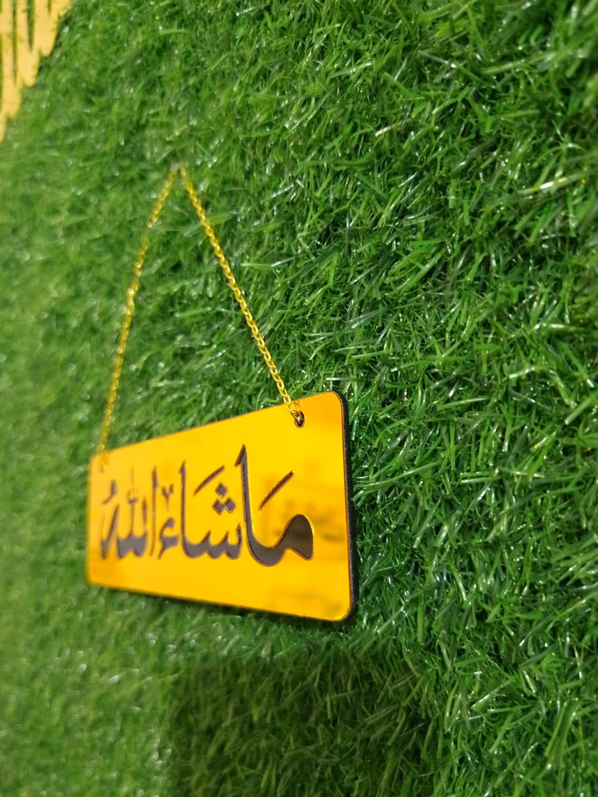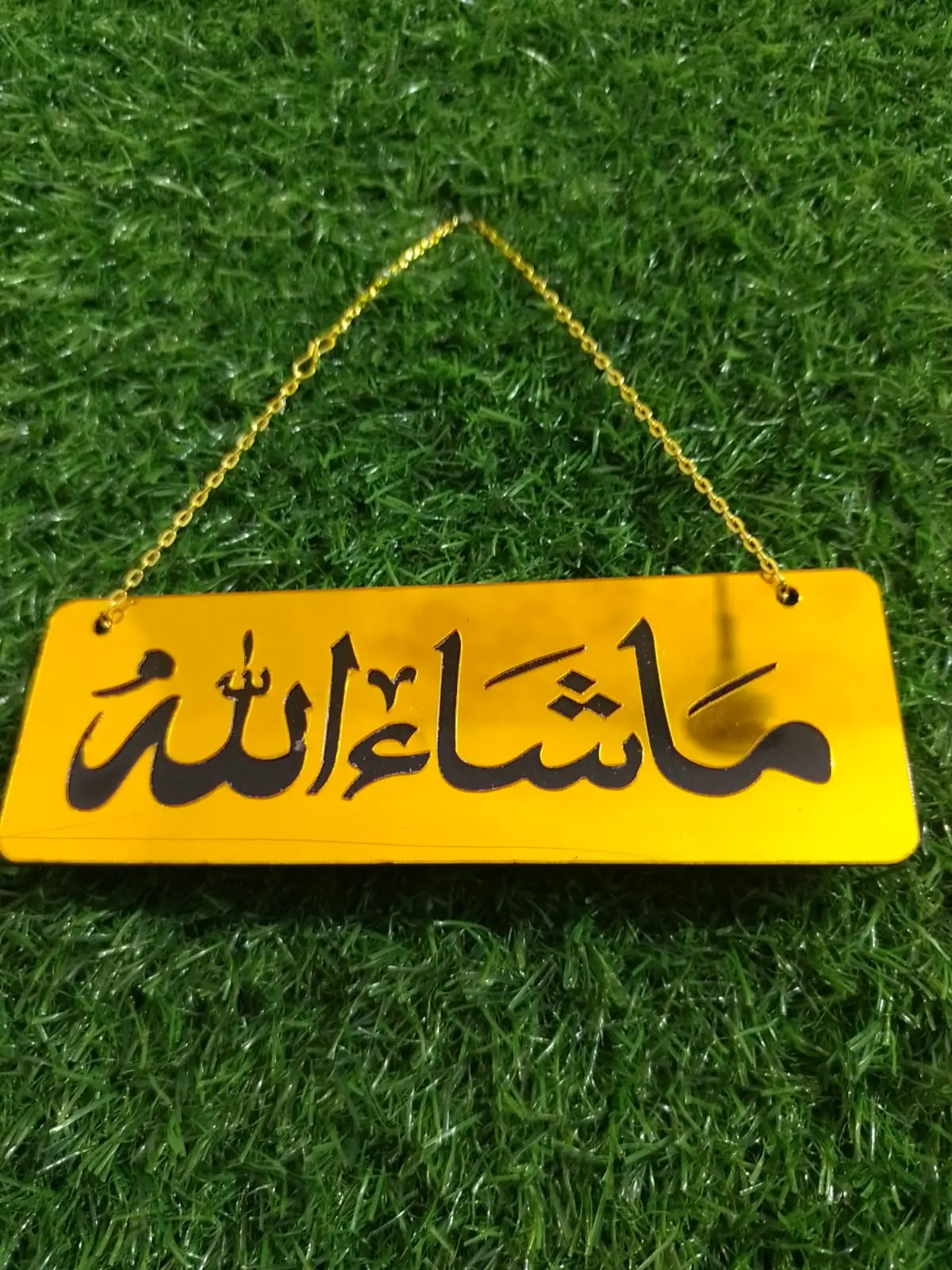 Designed with intricate Arabic calligraphy, it serves as a symbol of protection (nazar se bachao) and a reminder of Allah’s blessings wherever you go.