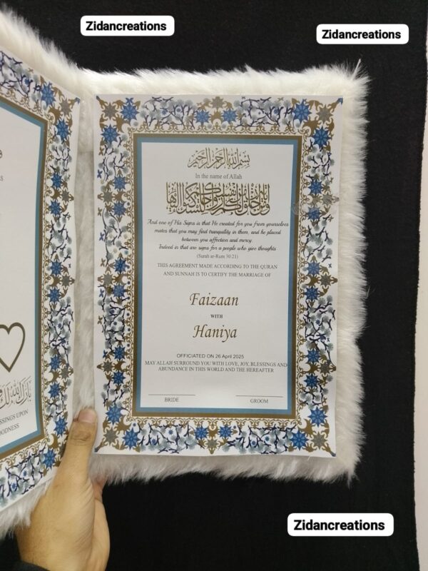A Nikah Nama is the official Islamic marriage contract that records the bride and groom’s details, consent, mehr (dower), and witnesses, making the marriage legally and religiously valid.
